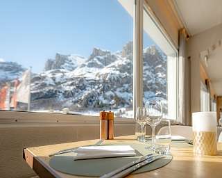 Unser Restaurant mit der ausgedehnten Fensterfront verwöhnt Sie mit liebevoll zubereiteten Gerichten und einem idyllischen Ausblick. Nutzen Sie auch die gemütlichen Ecken in unserer Lobby, um einen Kaffee oder Tee, einen hausgemachten Cocktail oder ein Glas Walliser Wein aus der Region zu geniessen.