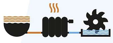 Wasserkraft – nach der Wärmeabgabe fliesst das Wasser in die Dala und wird zur Stromerzeugung in Leuk genutzt